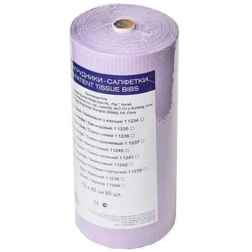 JNB Стоматологические салфетки-фартуки в рулоне, цвет лаванда, 53см х 60см.